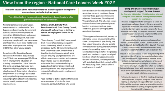 Essex County Council’s Entry to Work Team has made outstanding efforts to promote Early Career’s in local authorities, and by doing so, has continued to collaborate with the East of England Local Government Association (EELGA) regarding best practices and lessons learnt.